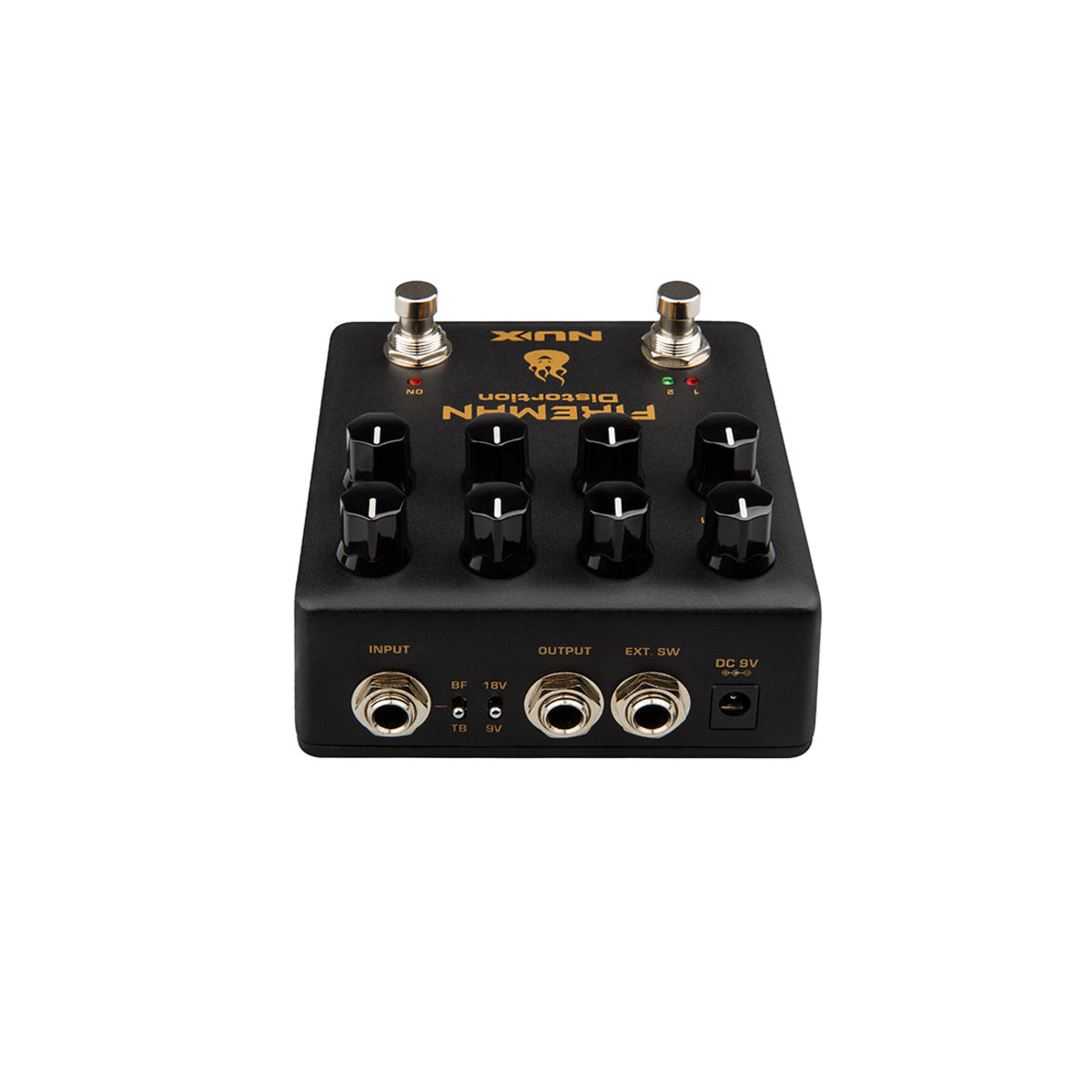 FIREMAN is based on the legendary amplifier builder's famous distortion pedal. It's a very amp-like distortion pedal with Modern Brown Sound. We designed it with 2 independent VOLUME, GAIN control knobs to fit rhythm and solo applications. FIREMAN offers a True-bypass / Buffer-bypass toggle switch, and a 9V / 18V toggle switch. The 18V position doubles the working voltage inside to give you wider dynamic range.