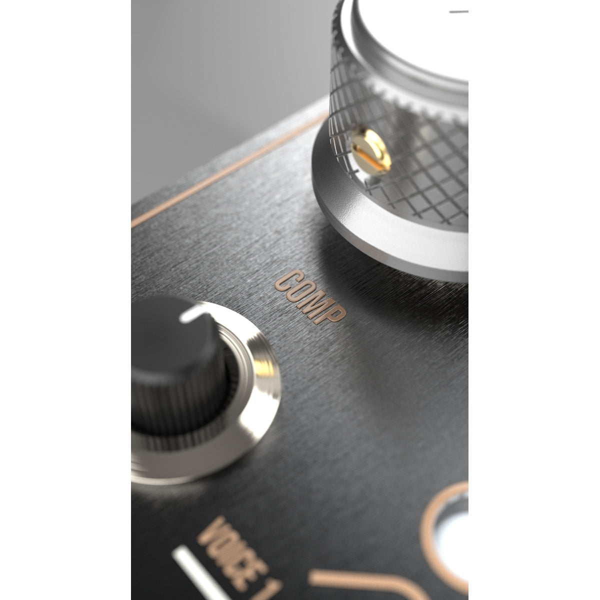 The NERO includes a "Comp" knob that manages compression by blending the sound from the Fuzz section with the Gladio SC section in parallel, thereby adjusting overall compression.