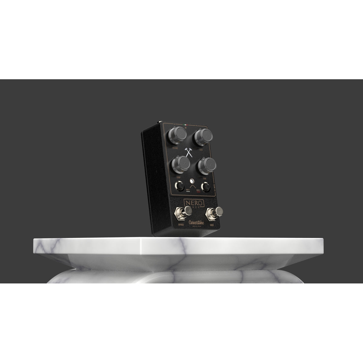 Forget about the typical low input impedances of fuzz pedals, which force you to place the fuzz as the first effect in the chain. The NERO offers a 1 Mega Ohm impedance, allowing it to be placed anywhere in the pedalboard.