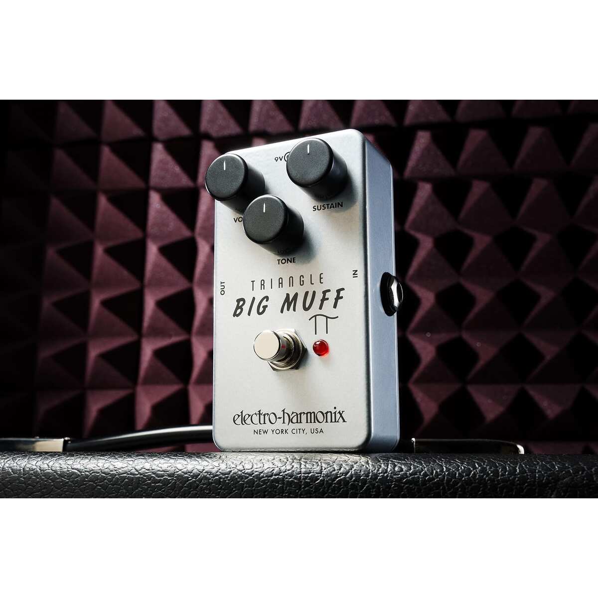 We have reissued the original Version 1 Big Muff and it's dripping with vintage Electro-Harmonix DNA and tone. Dubbed the Triangle Big Muff because of the layout of its Volume, Sustain and Tone controls, this is the one that started it all. The new EHX Triangle Big Muff is a faithful re-creation of the original circa 1969 circuit now housed in a pedalboard friendly, die-cast chassis.