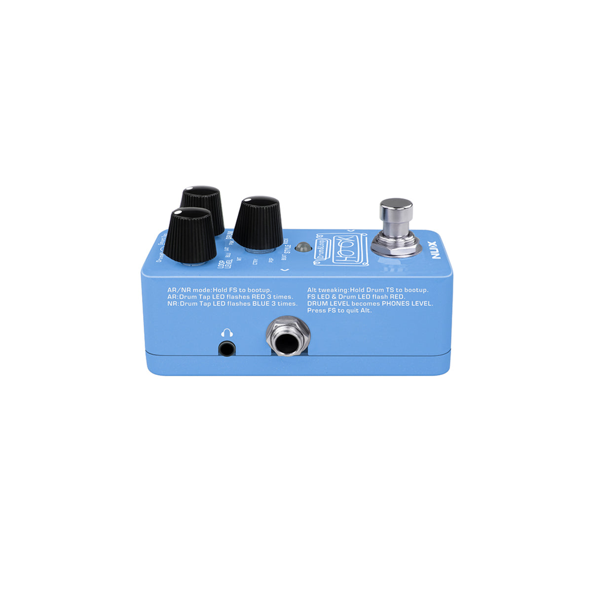 Note: To switch between NR/AR, hold the footswitch while plugging in the AC adapter to bootup the pedal. NR: Drum Tap indicator flashes BLUE 3 times. AR: Drum Tap indicator flashes RED 3 times.