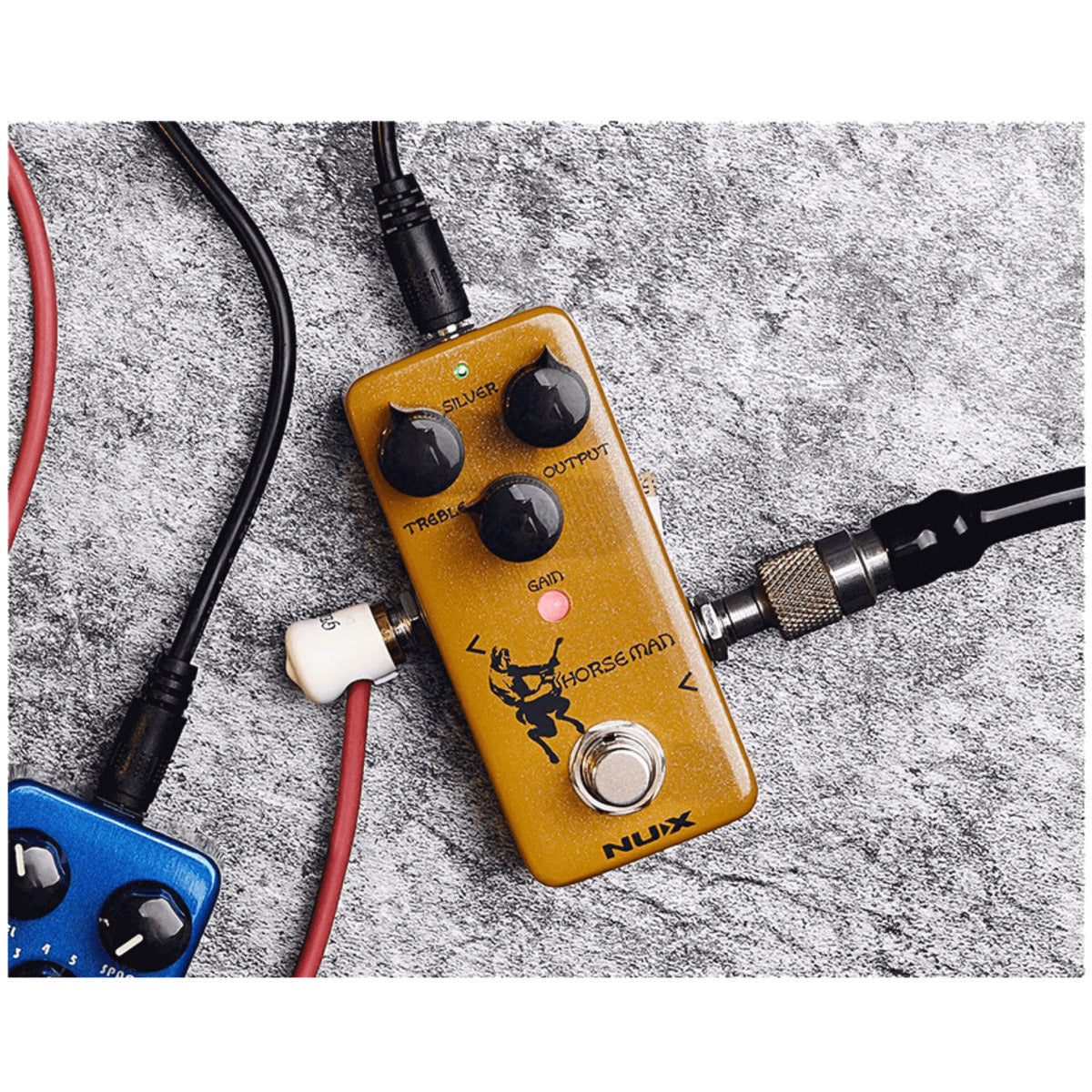 Another “classic” way to use the NUX Horseman. Very useful when used in combination with the amplifiers drive channel (or any other drive pedal). And, depending on the Gain - Output adjustment, it lets the Horseman be used as a clean boost. Dial-up a low-gain with a high output setting, and it adds mostly volume and minimal color to your sound.