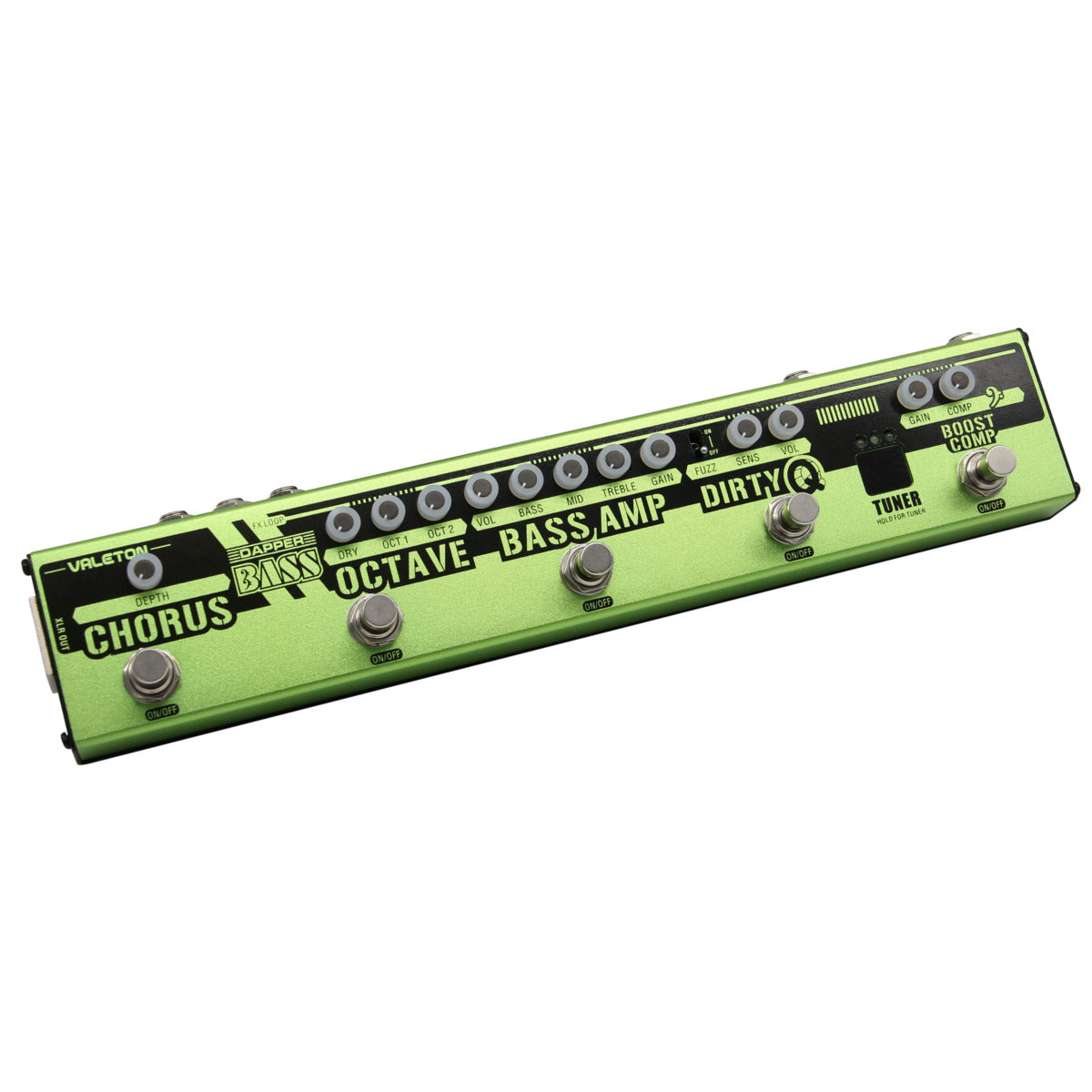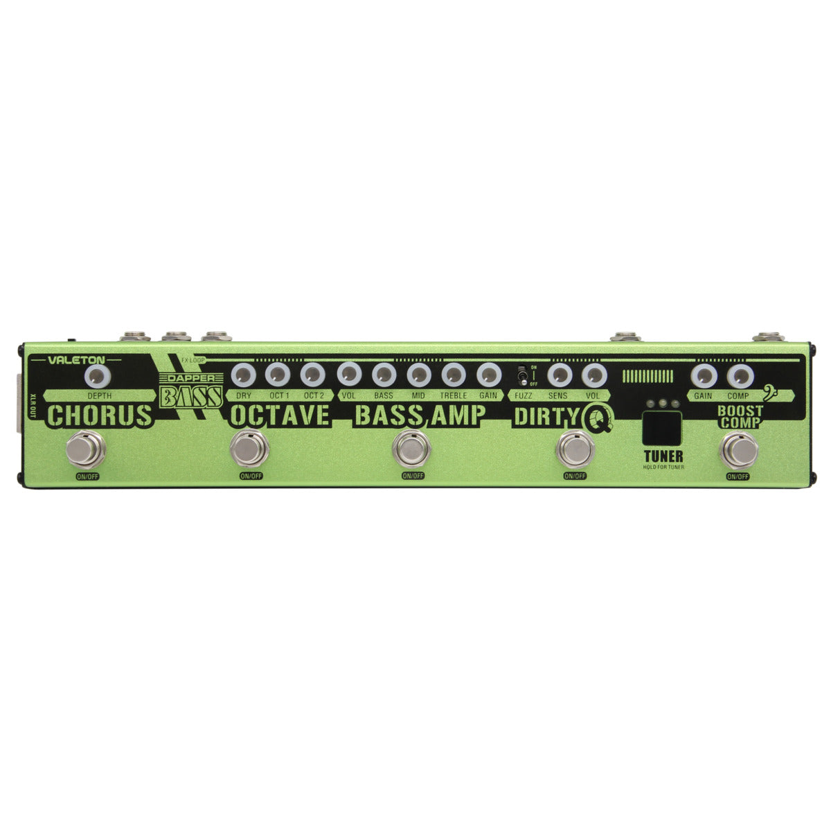 Dapper Bass is an all-in-one workhorse for bass players. This strip has everything you need, plus some inspiration. Includes a tuner, a boost/compressor, dirty Q, bass amp, octave, chorus, FX loop, and thru and XLR out.