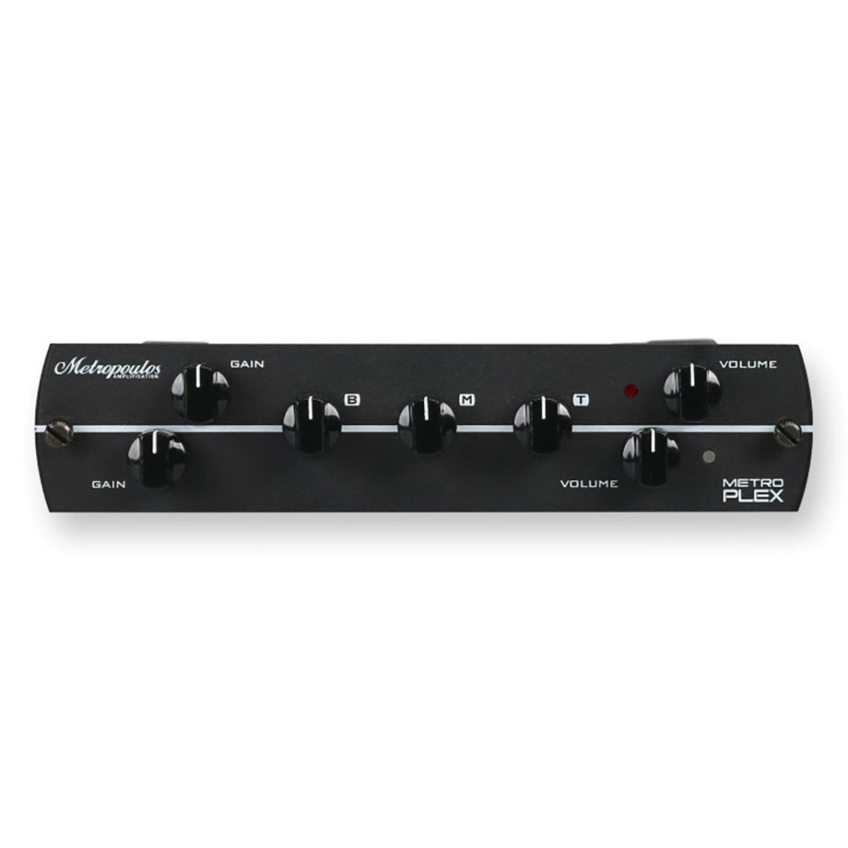 The Metro-Plex Synergy module features switchable gain and volume controls along with shared treble, middle and bass controls.