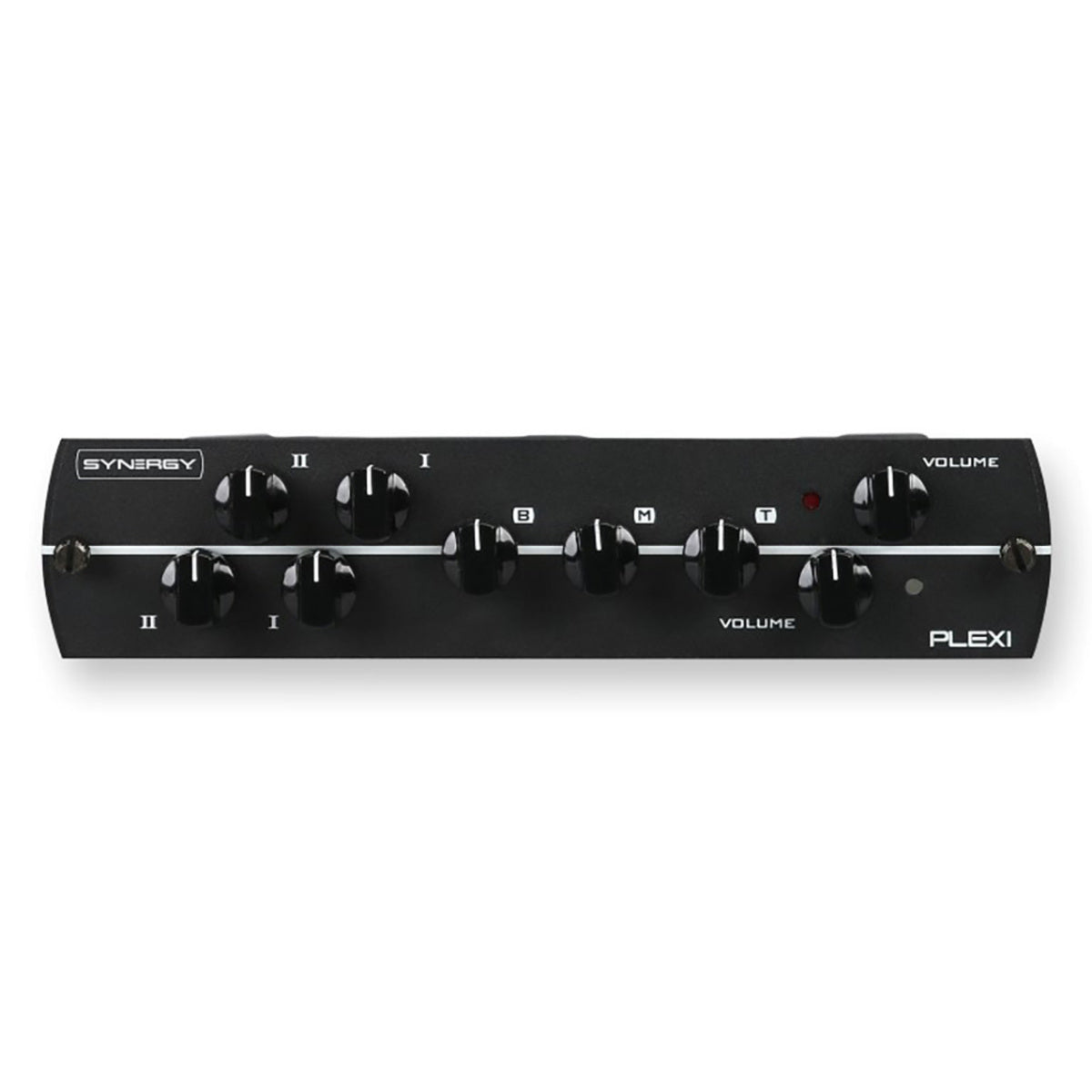 The Synergy Plexi pre-amp features two channels, each with gain, Input I and Input II knobs. Both channels share a three band EQ.