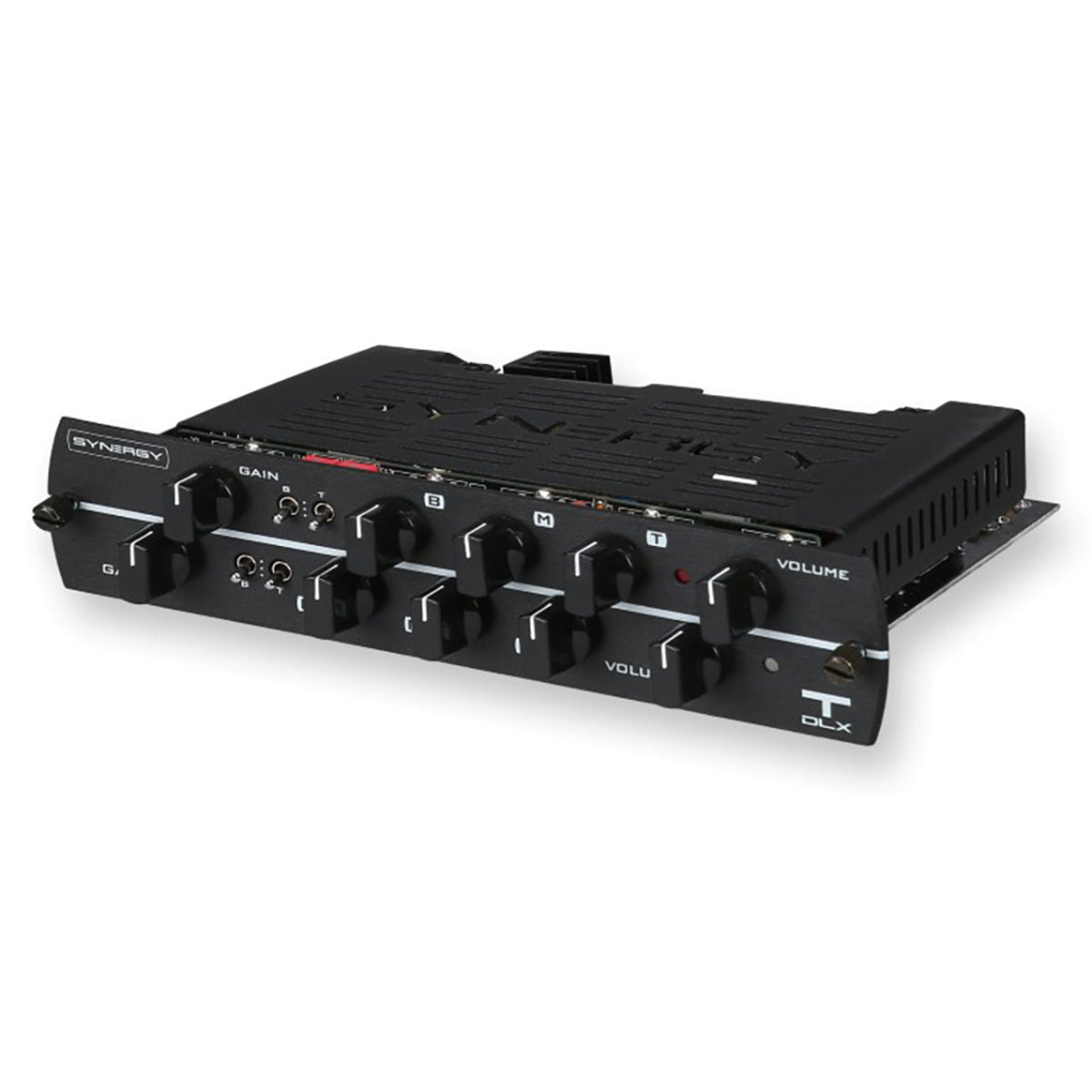 The Synergy T/DLX features two totally separate channels. Each channel features gain, volume and 3 band knobs as well as three position tight and bright switches.