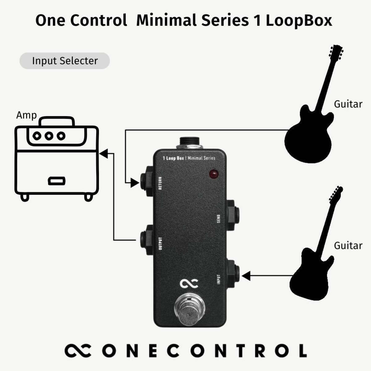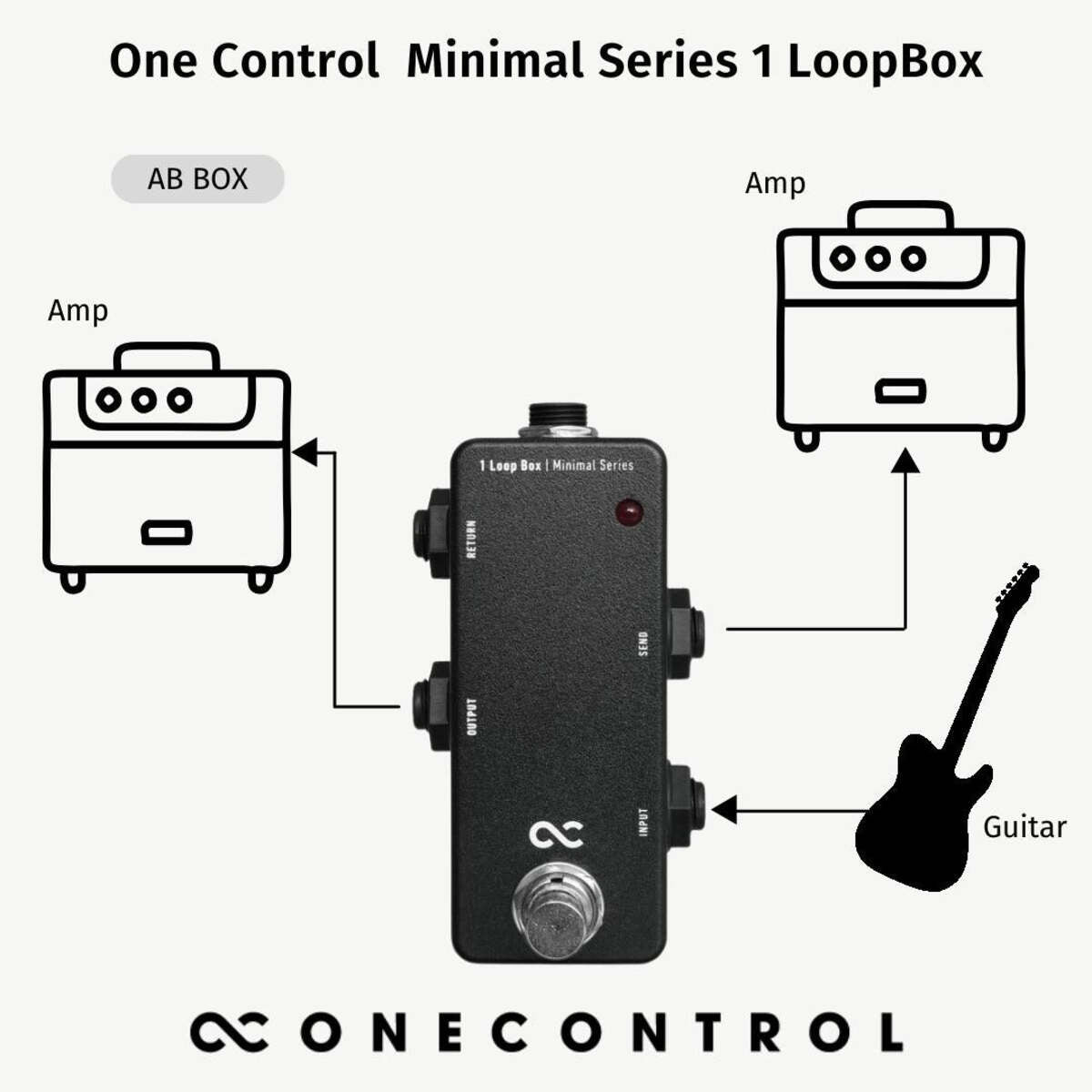One Control Minimal Series 1LoopBOX is a sturdy and simple effects loop switcher. One Control is the world's first manufacturer that has succeeded making a loop switcher in this small of an enclosure by using a revolutionary new PC board layout.