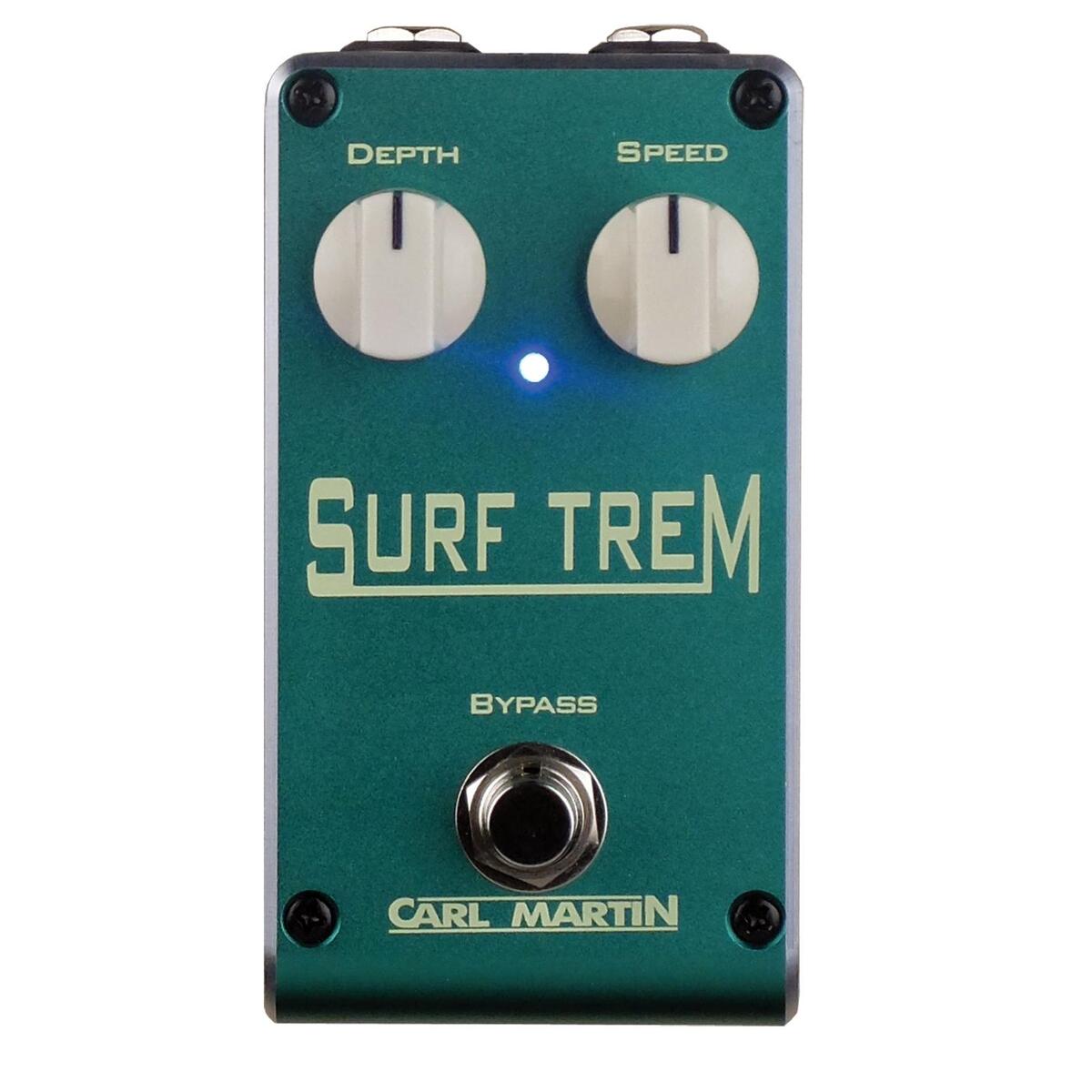 The Carl Martin Surf Trem has received a facelift from the boys in the back. The 2018 Surf Trem gets its circuitry from the famous Carl Martin TremO'vibe and takes you back to those infamous American amplifier tremolos... but wider, deeper, yet smooth with no noise or coloration. Clean, transparent analog trem... just what you would expect from Carl and the boys. The new 2018 Carl Martin Surf Trem has head-mounted Input/Output/9v, a very cool small footprint two-tone anodized diecast case, the same heavy duty switch and the awesome Carl Martin DC/DC converter circuitry that allows the pedal to run with +-12v internally while still being powered by a regular 9v 200mA external power supply. Bigger sound, bigger tone, all analog, all Carl Martin!